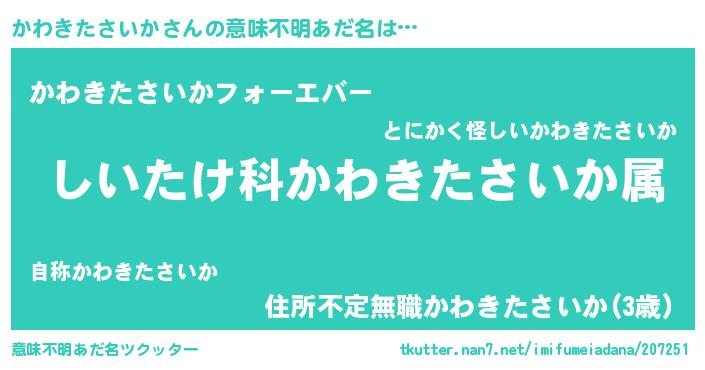ポケモン風あだ名 | 『カワキング』『カワキダネ』 |