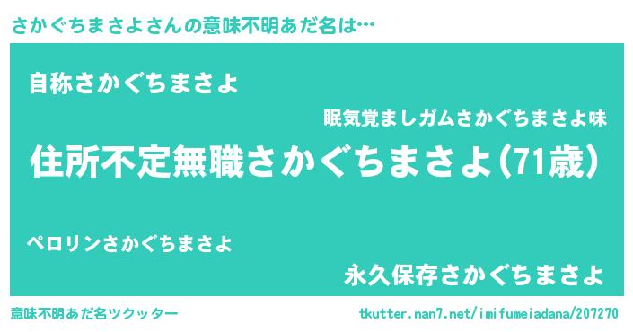 伝説のあだ名 | 『古より伝わる勇者さかぐちまさよ』 |