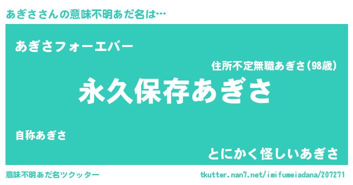 ヘコむあだ名 | 『あぎさ(爆)』『つくし』『あぎお』 |