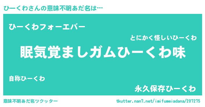 ポケモン風あだ名 | 『ヒックウザ』『ヒークダネ』 |