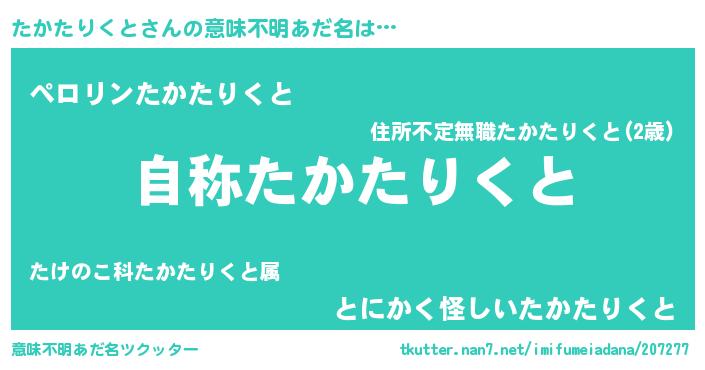 胡散臭い通販商品みたいなあだ名 | 『テレビで話題のアガリクス…その名も「たかたりくと」』 |