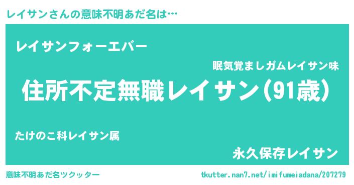 ポケモン風あだ名 | 『レーイイ』『レイサダネ』 |