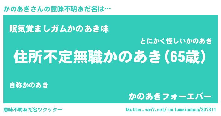 ヒーロー風カッコイイあだ名 | 『仮面カノダー』『慈愛の使者かのあき』 |