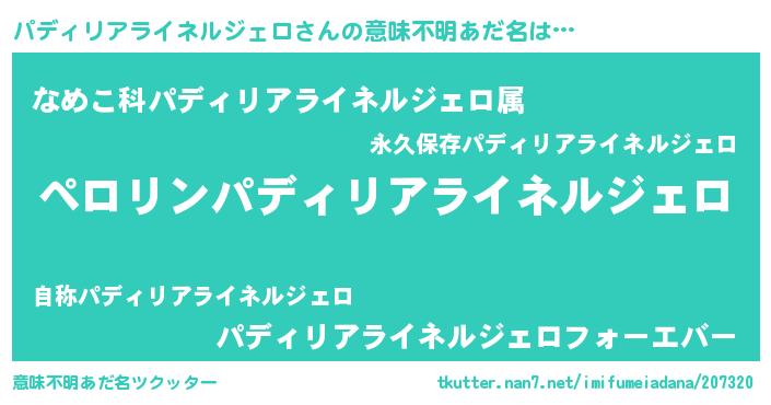 | 男性向けラノベタイトル風あだ名 | 『パディリアライネルジェロの憂鬱』 |