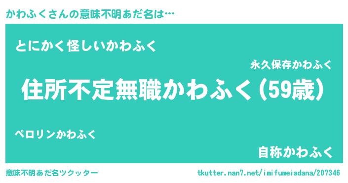 | 欧米人風あだ名 | 『アンジェラ・かわふく』 |