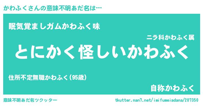 | 胡散臭い通販商品みたいなあだ名 | 『信頼と実績のサプリメント…その名も「かわふく」』 |