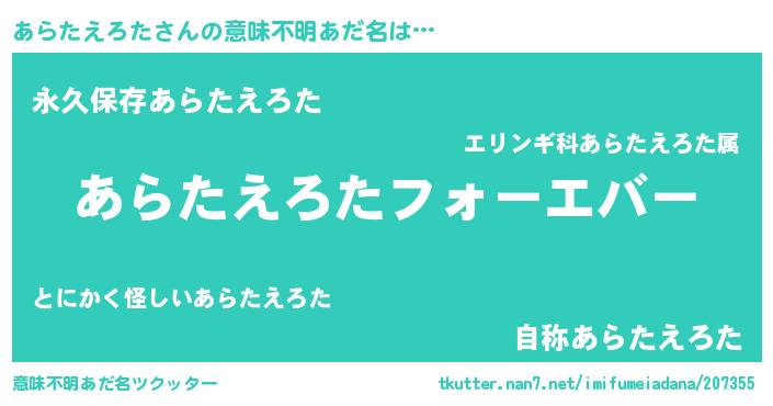 | 欧米人風あだ名 | 『あらたえろた・ステッグマイヤー』 |