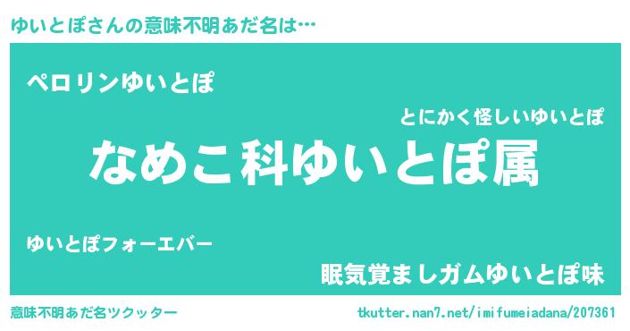 | 欧米人風あだ名 | 『アンジェラ・ゆいとぽ』 |