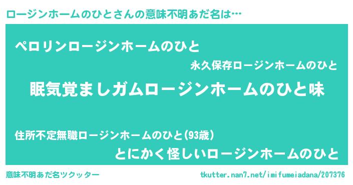 | 男性向けラノベタイトル風あだ名 | 『おまえをオタクにしてやるから、俺をロージンホームのひとにしてくれ! 』 |
