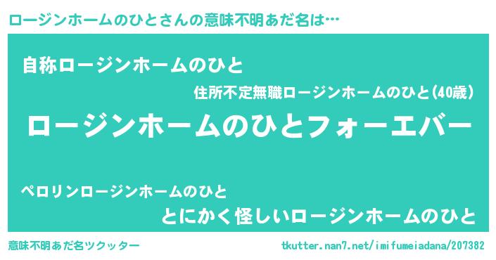 | 男性向けラノベタイトル風あだ名 | 『やはりロージンホームのひとの青春ラブコメはまちがっている 』 |