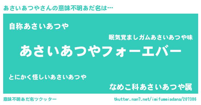 ファンタジー風あだ名 | 『エターナルアサイアツヤー』 |