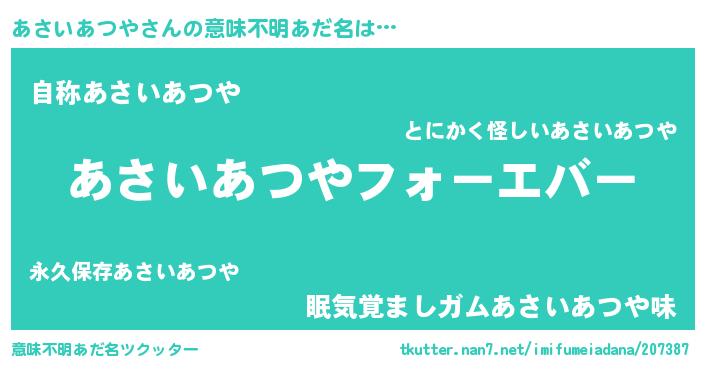 ファンタジー風あだ名 | 『エターナルアサイアツヤー』 |