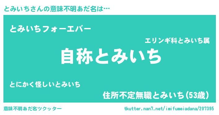 | ファンタジー風あだ名 | 『ゼトミトゥ』『エターナルトミイチー』 |
