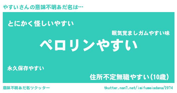 | ピコ太郎風あだ名 | 『ヤコ三郎』『ヤス五郎』『ヤヤ太郎』 |