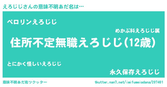 | 男性向けラノベタイトル風あだ名 | 『魔弾の王とえろじじ』『えろじじの憂鬱』 |