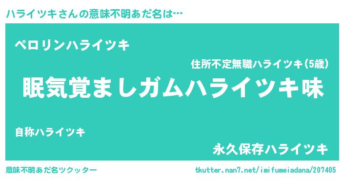 | 欧米人風あだ名 | 『ダニエルハライツキ』 |