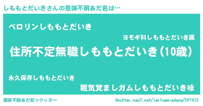 | 欧米人風あだ名 | 『ダレノガレしももとだいき』 |