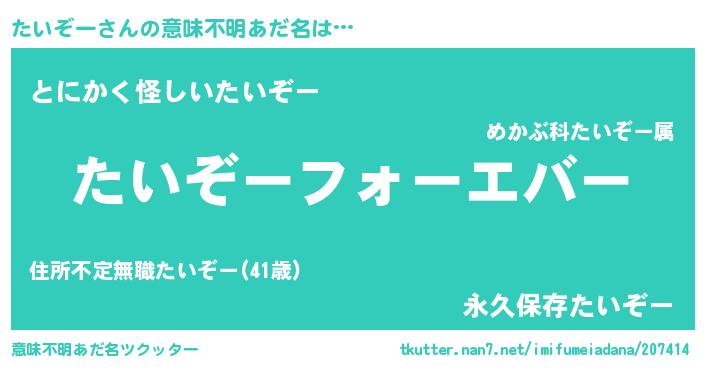 | 欧米人風あだ名 | 『たいぞークリステル』 |