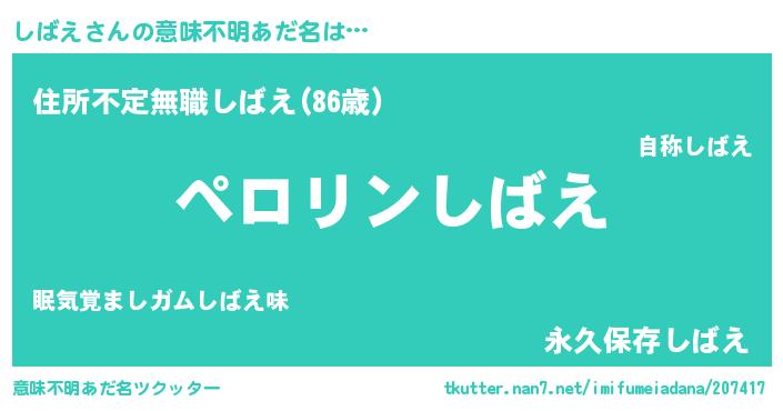 | 欧米人風あだ名 | 『しばえ・ステッグマイヤー』 |