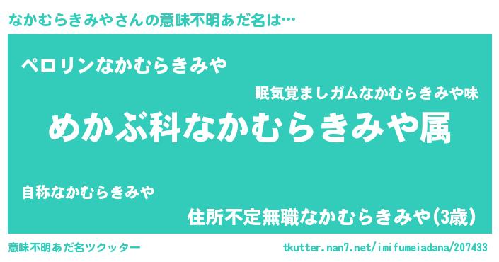 | 胡散臭い通販商品みたいなあだ名 | 『必ず成功するブレスレット…その名も「なかむらきみや」』 |