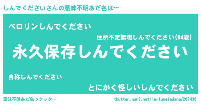 | ヘコむあだ名 | 『しんでください(笑)』『しんもー』 |