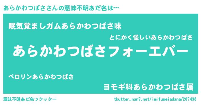 | ファンタジー風あだ名 | 『エターナルアラカワツバサー』 |