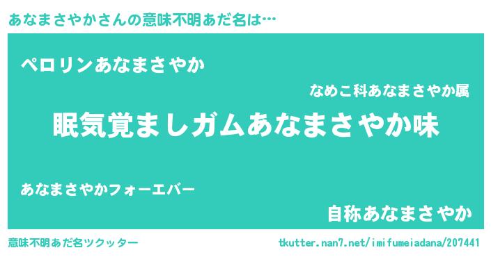 | 欧米人風あだ名 | 『ダニエルあなまさやか』 |