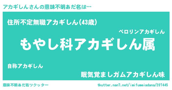 | 欧米人風あだ名 | 『トリンドルアカギしん』 |