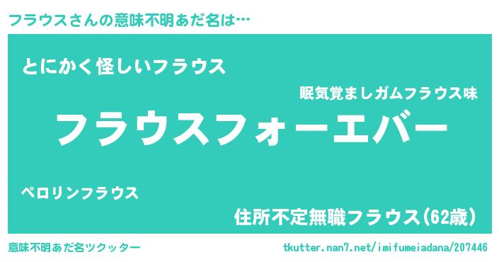| ヒーロー風カッコイイあだ名 | 『ウルトラフラウスマン』『幻影騎士フラ』 |