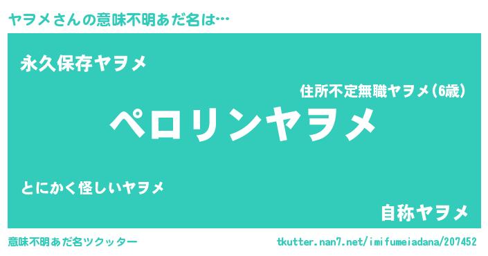 | ポケモン風あだ名 | 『ヤヲチュウ』『メロヤッヲ』 |