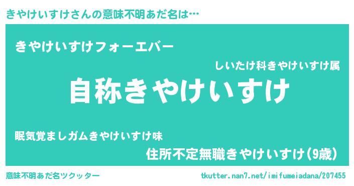 | 肩書あだ名 | 『きやけいすけ総統』『きやけいすけ教官』 |