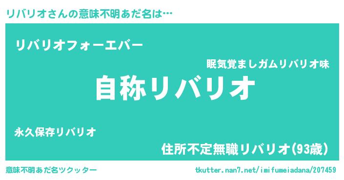 | 女子向けラノベタイトル風あだ名 | 『闇のリバリオ』『リバリオの雑貨屋さん』 |