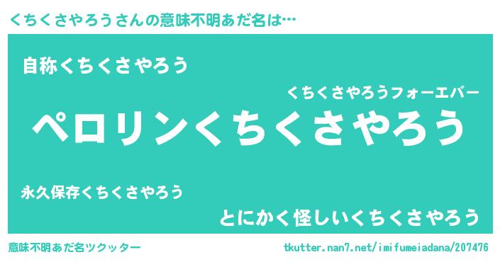 | 男性向けラノベタイトル風あだ名 | 『くちくさやろうの憂鬱』 |