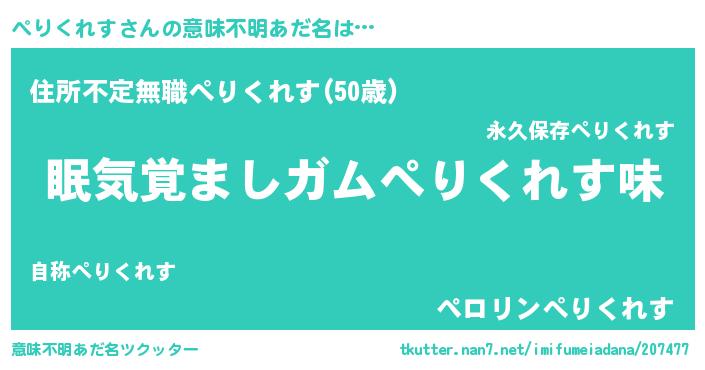 | ヘコむあだ名 | 『ぺりにー』『ぺりくれす(爆)』 |