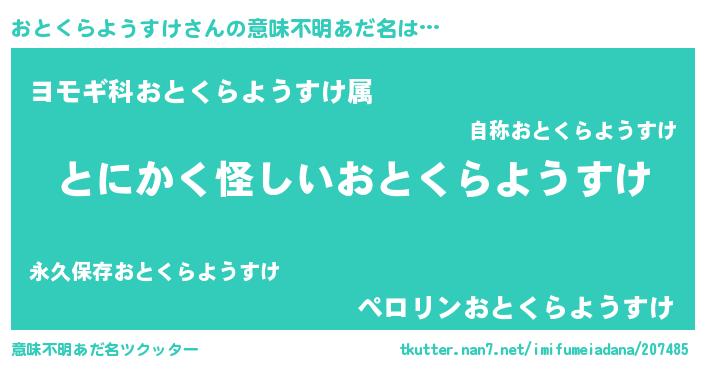 | 男性向けラノベタイトル風あだ名 | 『ダンジョンにおとくらようすけを求めるのは間違っているだろうか』 |