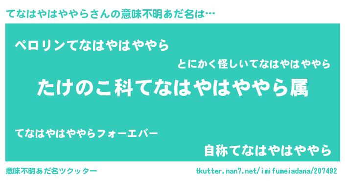 | 料理風あだ名 | 『てなはやはややらごはん』 |