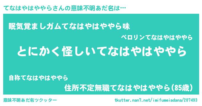 | 胡散臭い通販商品みたいなあだ名 | 『信頼と実績のサプリメント…その名も「てなはやはややら」』 |