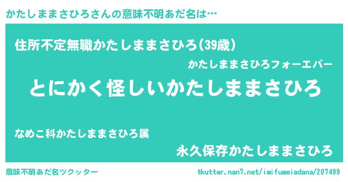 | ヘコむあだ名 | 『かたっちょ』『かたしままさひろ(笑)』 |