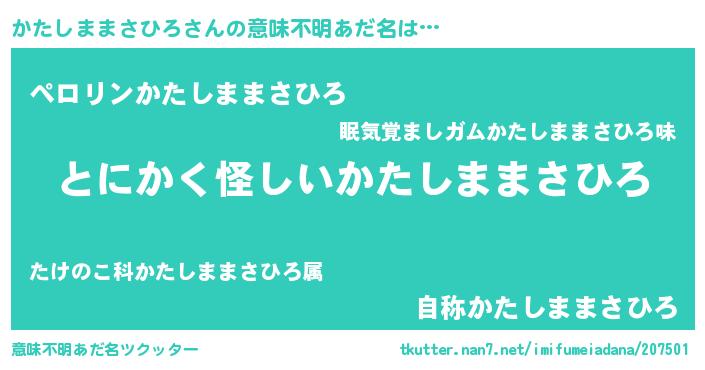 | ポケモン風あだ名 | 『ヒカタシママサヒロ』『カタゴンZ』 |