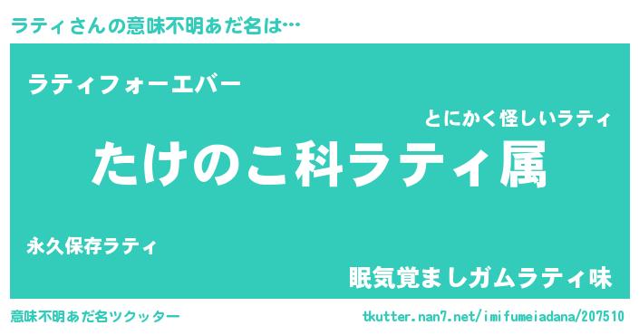 | 男性向けラノベタイトル風あだ名 | 『はたらくラティさま!』『緋弾のラティ』 |