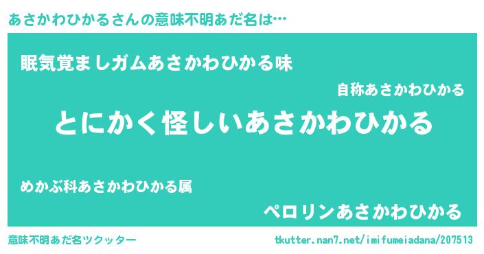 | 胡散臭い通販商品みたいなあだ名 | 『伝統あるサプリメント…その名も「あさかわひかる」』 |
