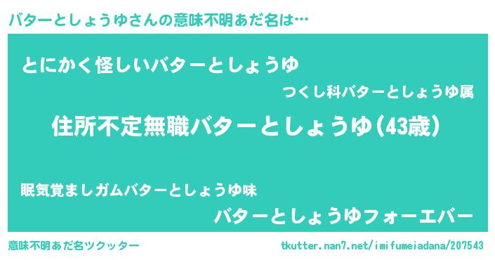 | 欧米人風あだ名 | 『ダレノガレバターとしょうゆ』 |