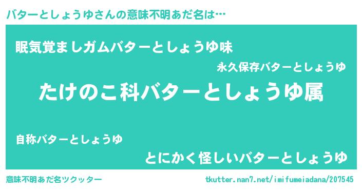 | 料理風あだ名 | 『バターとしょうゆごはん』 |