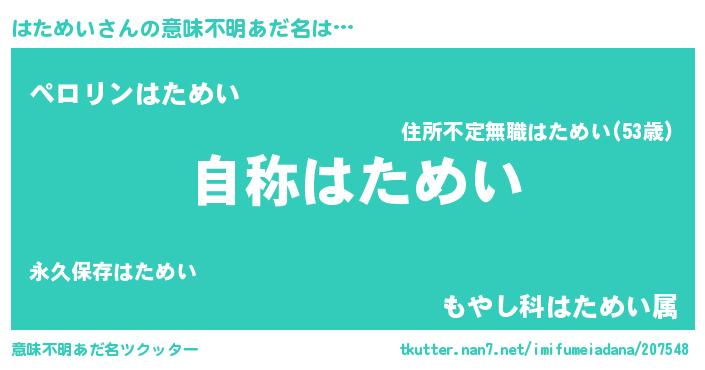 | 欧米人風あだ名 | 『はためい・ステッグマイヤー』 |