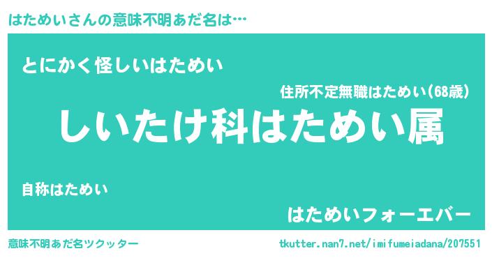 | ピコ太郎風あだ名 | 『ハタ三郎』『ピハ太郎』『ハコ八郎』 |