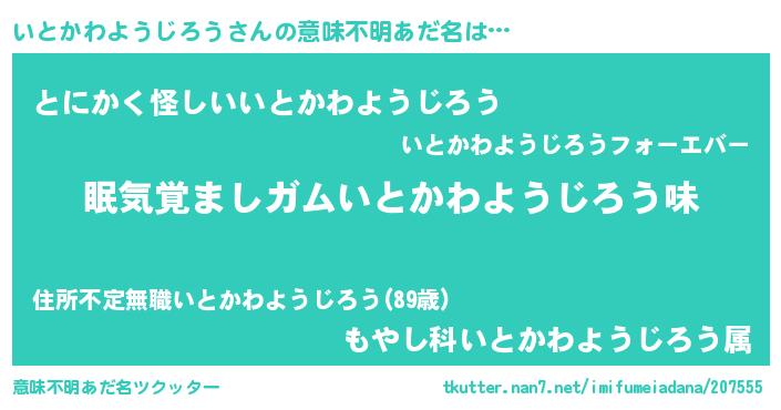 | 男性向けラノベタイトル風あだ名 | 『ノーゲーム・ノーイトカワヨウジロウ』 |