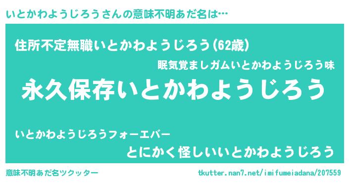 | 胡散臭い通販商品みたいなあだ名 | 『来世でも幸せになれる健康食品…その名も「いとかわようじろう」』 |