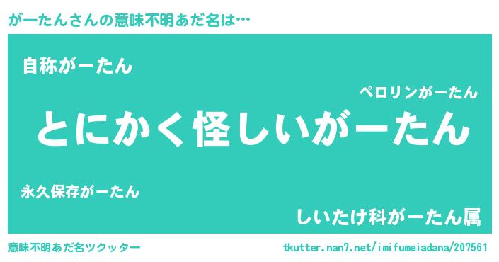 | 胡散臭い通販商品みたいなあだ名 | 『信頼と実績のネックレス…その名も「がーたん」』 |