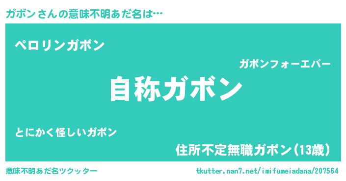 | 男性向けラノベタイトル風あだ名 | 『Re:ガボンから始める異世界生活』 |