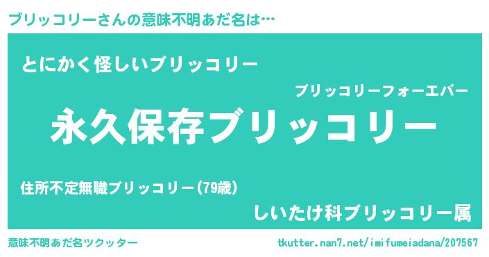| ヘコむあだ名 | 『ブリッコリー(震え声)』『ブリぷりん』 |